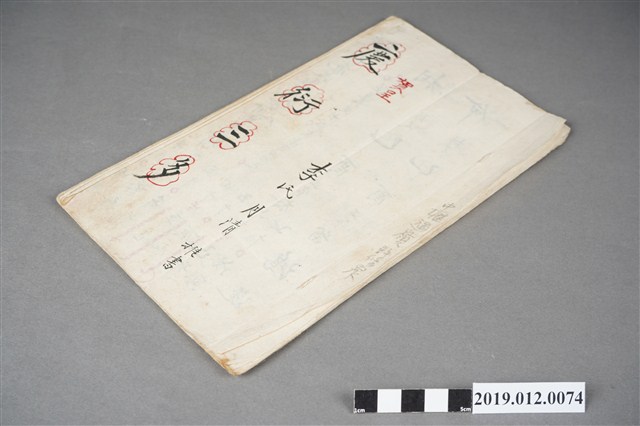 此文物推測為中壢過嶺許修泉家昭和時期於李氏月清算命所留下的紀錄─推書,共八頁四面,問事人為許阿亮,封面題有慶衍三多,為祝福人多福多子之意,為前四頁類似為流年、命盤等紀錄,後四頁似為其一生之簡短預測。