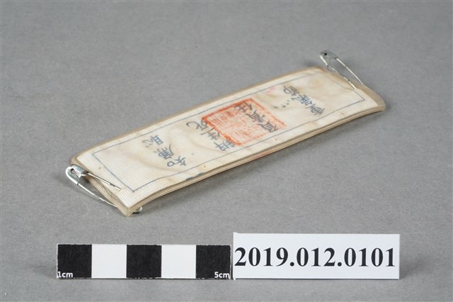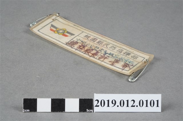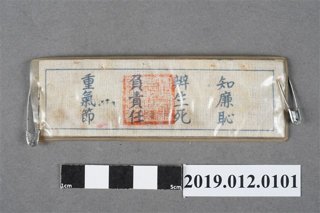 此為桃園縣民指揮部總務股長許學發的名牌,背後寫有「知廉恥、辨生死、負責任、重氣節」等字。