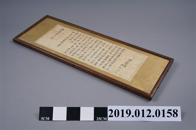 此文物為「大久保利通文書(牡丹社事件)」,標題寫著「岡山縣士族 津島俊若」,其內容記述牡丹社事件,於明治7年12月所記,最後面有一個印章。