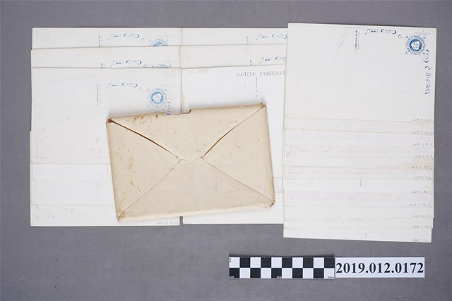 此組物件為大正11年(西元1922年)平和紀念東京博覽會明信片,共有21張明信片,形式圖案各有不同,多以博覽會之場館為主題。平和紀念東京博覽會,東京府於大正11年(1922年)3月10日至7月31日,於東京上野舉辦,其目的為紀念一次大戰後的和平,而台灣也參與展覽之中,台灣館的位置於第二會場不忍池旁,展出台灣相關之特色及產品,最後台灣館的銷售額僅次於東京府,獲得第二位。