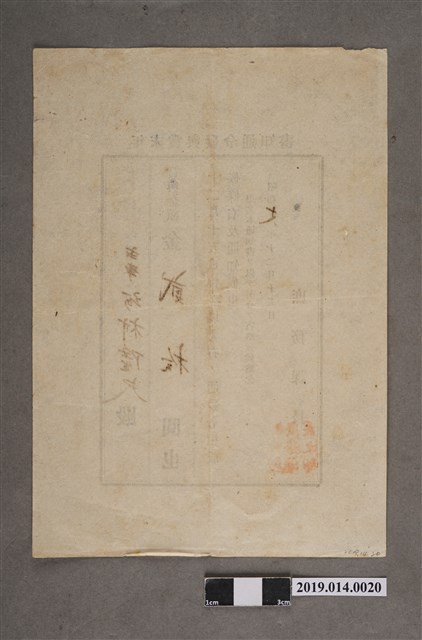 該物件為臺南州總務部長於1942年(昭和17年)12月15日發予臺灣臺南州公立國民學校訓導河村隆夫的年末賞與發令通知書,其上紀錄賞與金額為155圓。