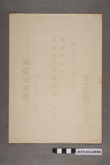 該物件為1944年(昭和19年)1月10日新化北國民學校頒與河村禧元(即捐贈者柯瑞吉)的第三學期間副級長任命書。