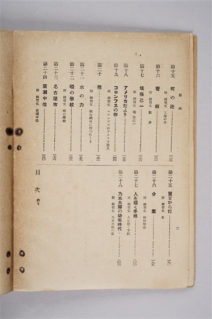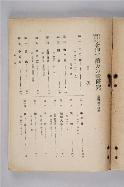 該物件為東京/大阪駸駸堂出版部於1928年(昭和3年)發行的作文參考書,供小學第四學年學生使用。全書共二十八回,每回有一篇課文,並附解析及練習題。此外,有數回尚附一至二篇「練習文」,讓學生複習據前所學之方法。