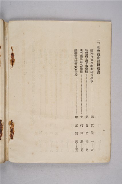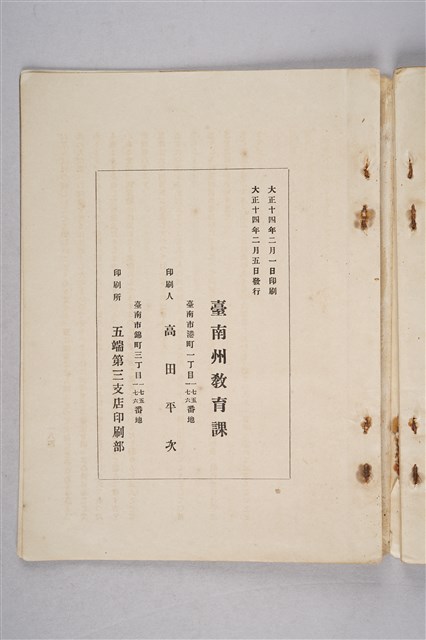 該物件為臺南州教育課於1925年(大正14年)出版之教育論文集。該論文集分成兩部分,第一部分為「公學校國語教授の效果を增進せしむる具體方案」,共有十二篇文章;第二部分為「社會教化宣傳筋書」,共有四篇文章。