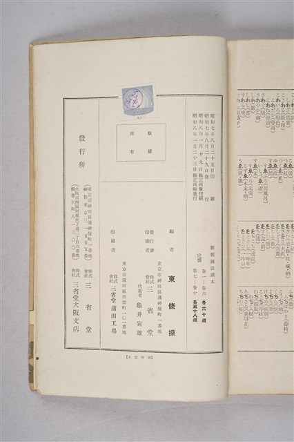 該物件為三省堂株式會社於1933年(昭和8年)再發行的國語讀本(初版日期為1933年8月29日),作者為東條操。全書共三十八回,內容以日本文學作品為主,但亦有漢詩,如朱熹的偶成和陶淵明的雜詩。封底寫有「一ノ一柯枝生」。