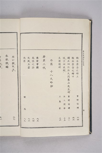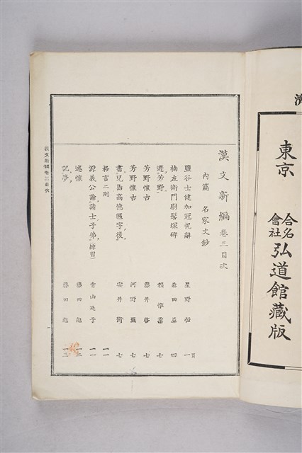 該物件為弘道館合名會設於1921(大正十年)發行的漢文學習書籍,由東京帝國大學文學部教授鹽谷溫編纂。全書分成內篇「名家文鈔」及外篇「十八史略鈔」。前者收40篇中日作家、詩人作品,後者依中國史斷代錄歷史相關詩文。書末附中國史年表(僅至宋代)及地圖。