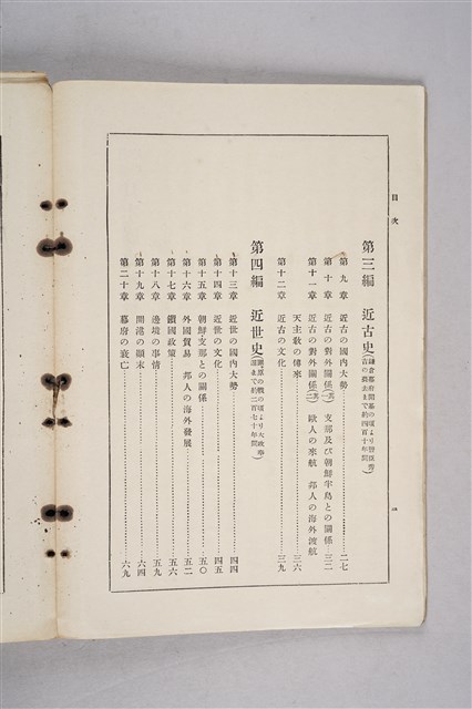 該物件為三省堂株式會社於1921年(大正10年)12月修正再版之中學校用日本歷史教科書(初版日期為1917年10月25日),供中學校五年級學生使用。全書分成上下卷:上卷為明治天皇之前的歷史,又分上古、中古、近古和近世;下卷為現代史,即始自明治天皇之歷史,並詳述日本的對外關係。