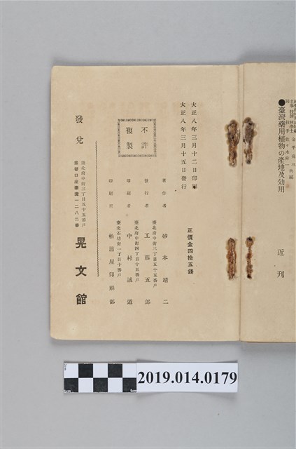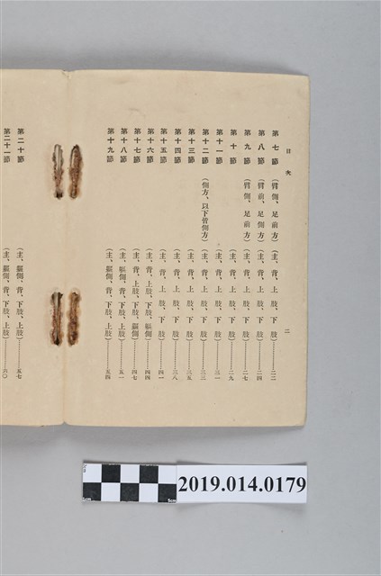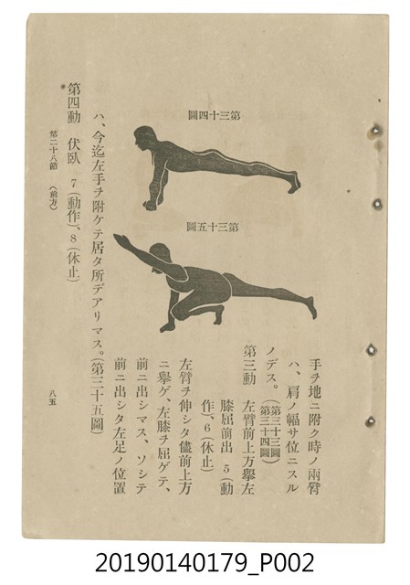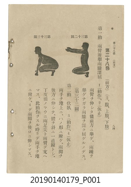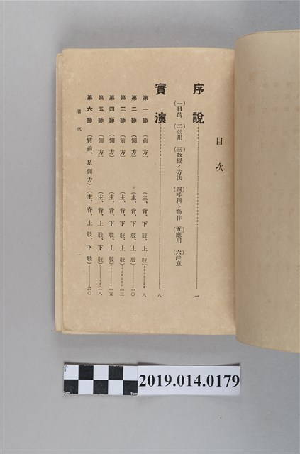 該物件為1919年(大正8年)3月晃文館發行的體操教材《最新臂腳連和體操》,作者為砂本靖二。書中所介紹的體操供第四學年以上的小學生練習。