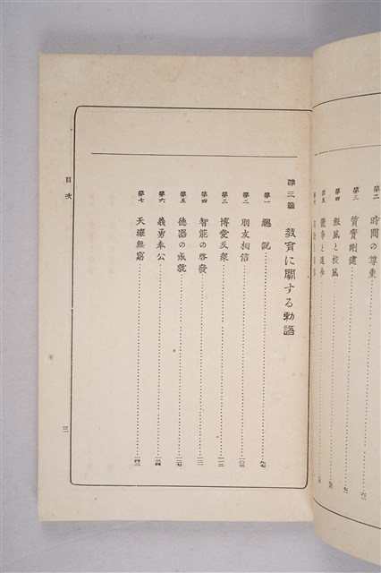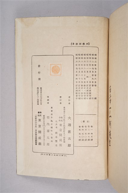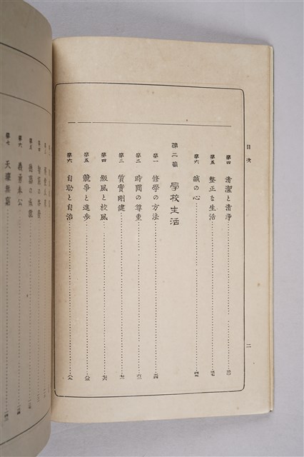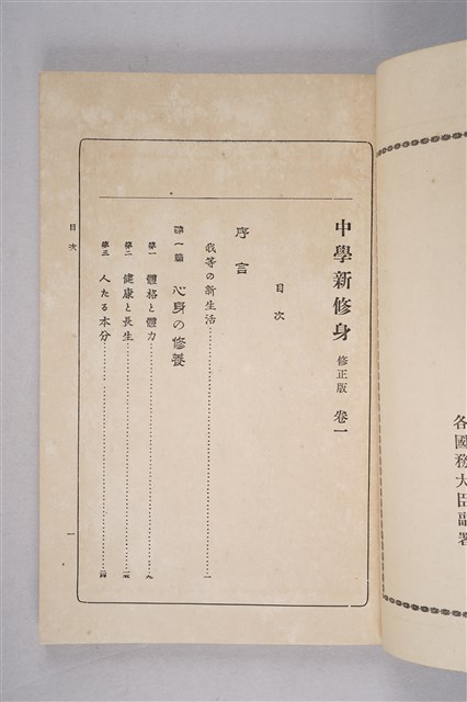 該物件為東京開成館株式會社於1931年(昭和6年)7月24日發行的中學修身科教科書(初版日期為1927年7月29日),作者為大瀨甚太郎。該書內容分成三篇:第一篇「心身の修養」,講述應有的生活模式及身體鍛鍊;第二篇「學校生活」,介紹求學方法與校內經營;第三篇「教育勅語」,討論道德行為的培養與智識的啟發。原物主為曾就讀南二中的柯枝生。