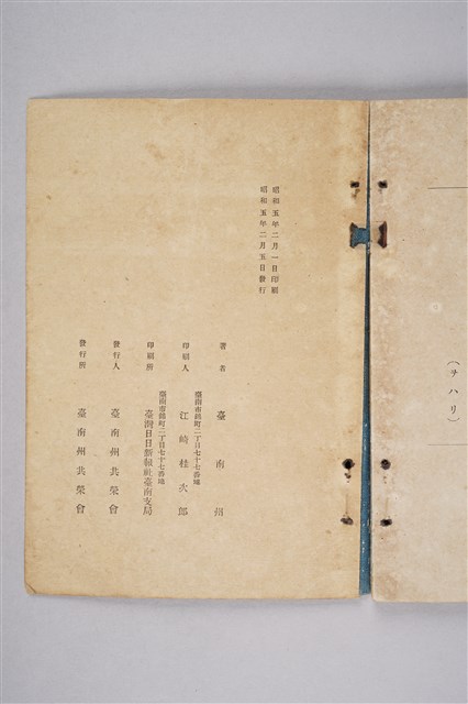 該物件為1930年 (昭和5年)2月5日臺南州共榮會發行的國語教本,供國語講習所教學使用,旨在配合政策普及國語(日文)。課本內容以片假名寫成,書末附平假名五十音表。