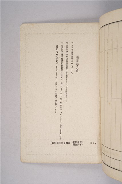 該物件為柯枝生從1927年(昭和2年)使用至1932年(昭和7年)的公學校通信簿。該通信簿的內容為學生基本資料、家庭狀況、關係職員(即校長與導師姓名)、學生經歷、成績、出缺席表、身體狀況表、通信欄等。從中可看出,物主柯枝生原姓楊,後由柯天送收養,改姓柯。第14至15頁中夾入「大日本婦人會會歌及綱領」一紙。