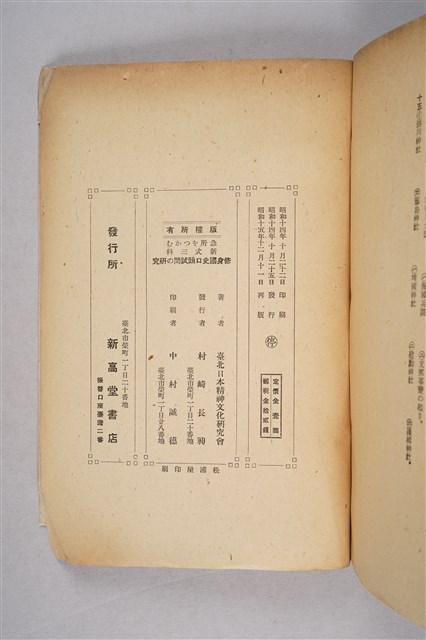 臺北新高堂書店、參考書、修身、國史、口頭試問、臺北日本精神文化研究會