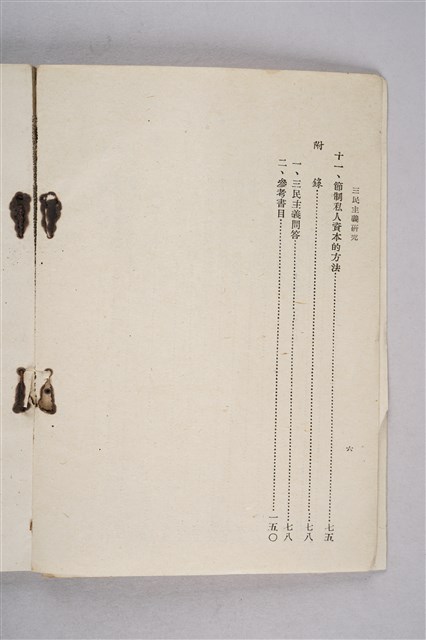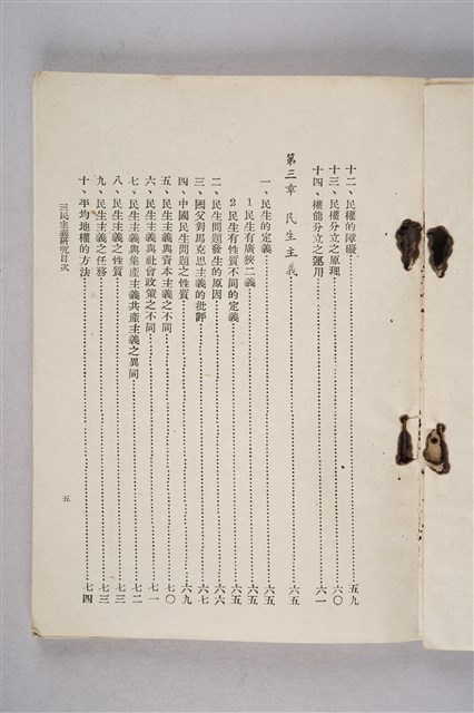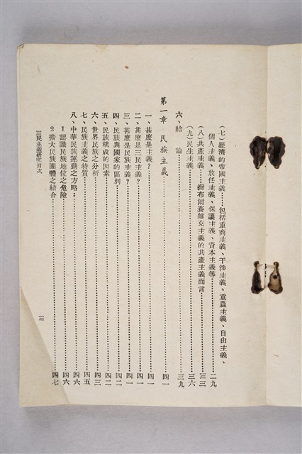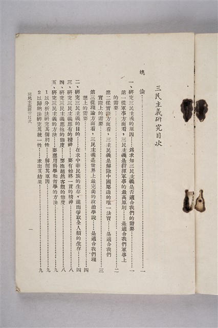 該物件為1955年(民國44年8月)由三民主義教學研究會所出版的書籍,編者為葉守乾,發行者為台灣省立師範大學國父遺教研究會。全書共四部分:總論(說明研究三民主義的目的與方法)、第一章民族主義、第二章民權主義、第三章民生主義。後附三民主義問答和參考書目。書封內頁印有「三民主義研究會贈」。