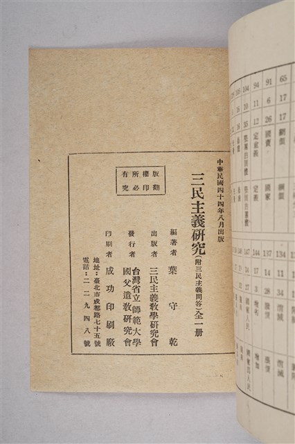 三民主義教學研究會民國44年8月出版《三民主義研究(附三民主義問答)全1冊》