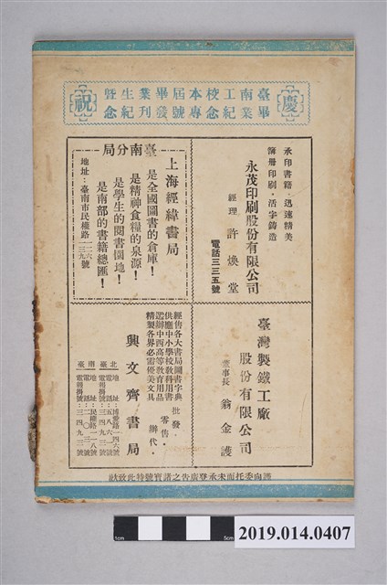 臺灣省臺南工業職業學校出版《南工校刊 畢業紀念專號》