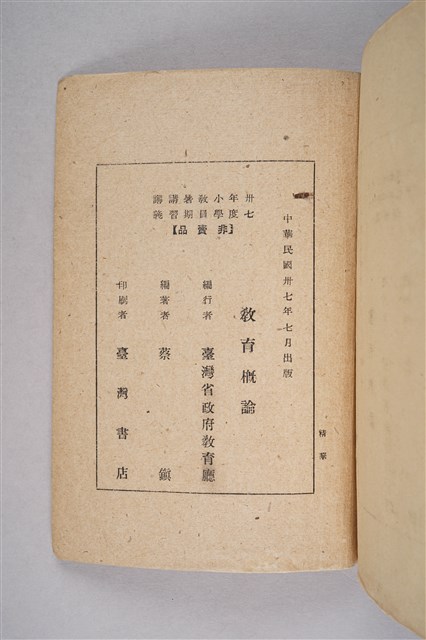 臺灣省政府教育廳編行《小學教員暑期講習講義之五:教育概論》