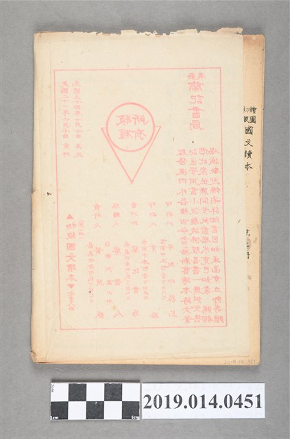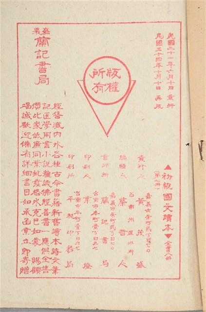 該物件為1945年10月10日蘭記書局再版的繪圖初級國文讀本第七冊(初版日期為1932年6月10日),編輯人為蔡哲人。該國文讀本共八冊,每冊均有五十課,內容以文言文寫成。