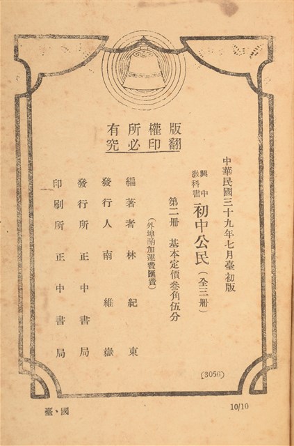 林紀東《初級中學公民》第2冊