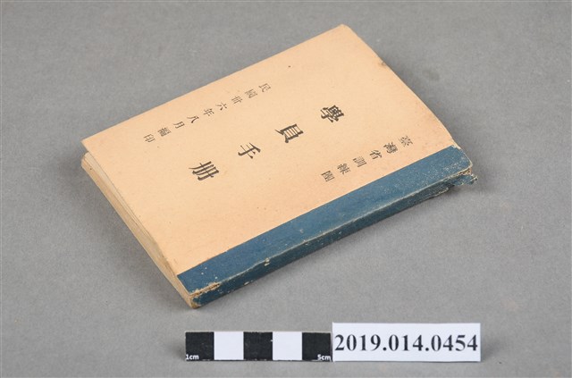 該物件為1947年(民國38年)8月臺灣省訓練團學員手冊。內容包含訓練團規程、組織、學員須知、學員生活規則、課外活動實施辦法等,前附訓練團營區平面圖,後附歌曲十首。該手冊上半部已被蛀蟲蛀掉大半。