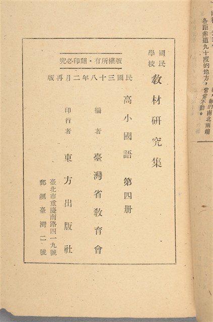 臺灣省教育會編《國民學校教材研究集 高小國語》第4冊