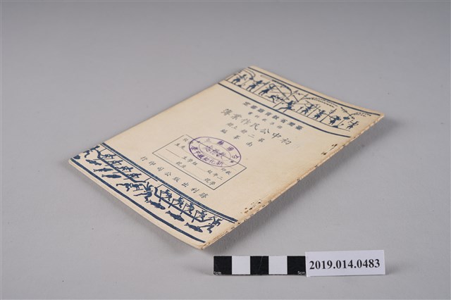 該物件為1955年(民國44年)9月勝利出版公司再版的初中公民作業簿第二冊上冊。根據其編輯大意,該作業簿是「配合臺灣省教育廳發行的《標準教科書初中公民》而編」,共三冊,編者為南峯。全書共十二章,內容涉及家庭生活、學校生活、社會生活等。每一章分成兩部分:第一部分為「內容提要」,將條列該章重點;第二部分「練習」提供各式題目,協助學生複習。封面印有「臺南縣立新化初級中學教務處」之圓印。