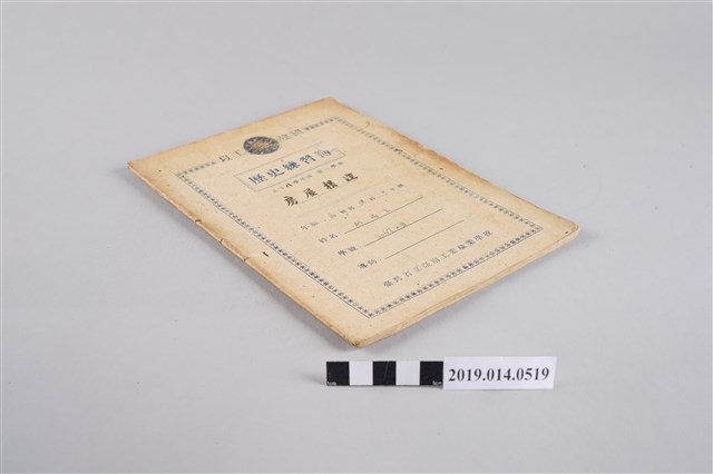 該物件為捐贈者柯瑞吉就讀臺灣省立臺南工業職業學校高級部建築科三年級(三十八學年度第一學期)時所使用的筆記簿,內容是關於房屋構造的筆記和圖畫,並有批改痕跡。該筆記簿原為「歷史練習簿」,但物主將之另作他用。封面上方的國民黨黨徽被物主用鉛筆塗成灰色。