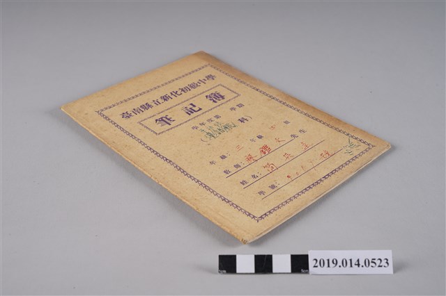 該物件為簡英達就讀臺南縣立新化初級中學三年級時所使用的筆記簿,該筆記簿被其用作單語帳,抄錄英文單字。