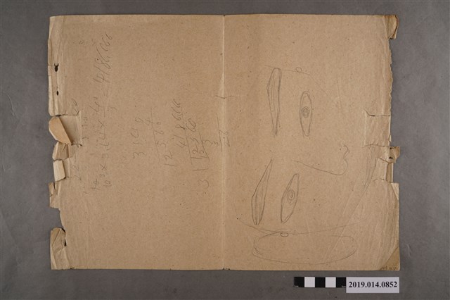 該物件為河村禧元(即捐贈者柯瑞吉)的地理科試卷,試卷編號60。該試卷要求考生畫出東亞共榮圈的略圖,並標出各區域名稱、首府及港市。柯瑞吉以紅筆、藍筆和鉛筆繪出該圖。試卷背面有計算過程和人臉塗鴉。