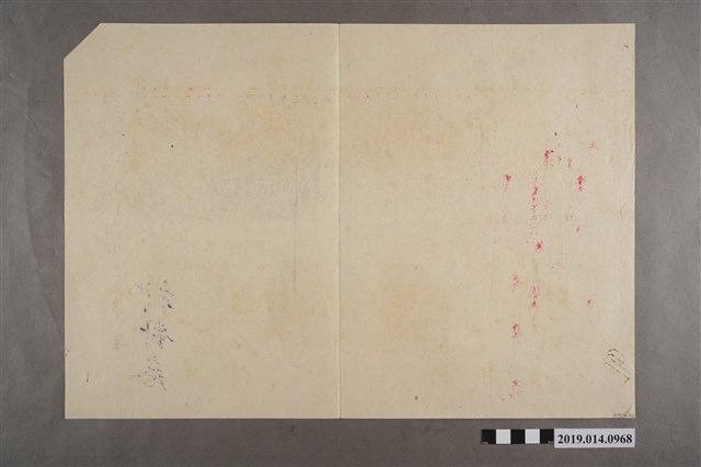 該物件臺南縣立新化初中50學年度一年級第二次月考公民科試題答案卷。試卷題型共3種:是非題16題、選擇題15題、填充題8題,試題上有捐贈者柯瑞吉之父柯天送用紅筆寫下的答案。試卷內容有國民與公民概念、共匪問題、地方自治、褫奪公權、公民權利義務等。該試卷右下角印有「校對卷」3字。