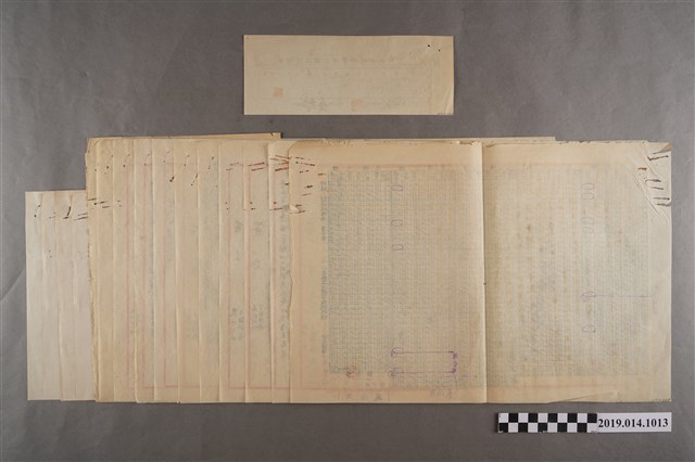 該物件為一疊由迴紋針夾起的「臺南縣立新化初中校內語文競賽、考試成績文件」,共16件。由於迴文針嚴重生鏽,未保護紙張,已將之拆除。推測該文件為捐贈者柯瑞吉之父柯天送任新化初中總物主任與教務主任時,所取得有關考試與競賽的學校文件。