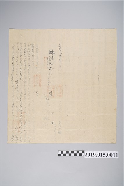 本件屬於岸裡社潘家文書其中一件,為道光16年(1836)西勢尾社阿四老馬下六有水田一坐落在土社口庄背,年可收租谷20石。因缺錢應用,向原耕佃人林崑瑺兄弟,借典田銀母280大元,並將此水田出典給林崑瑺兄弟耕作10年,從道光17年(1837)到道光26年(1846)止,並將年收租谷20石交給林崑瑺兄弟抵銷典銀的利息。10年期限屆滿後,田主如返還所借銀項280大元即可贖回水田,林崑瑺兄弟不可霸佔;如果田主無力返還,則林崑瑺兄弟仍可繼續耕作此田。在場公證人阿未馬下六、阿道毛甘。此件和108030-0010〈道光16年10月林崑瑺兄弟承耕典田偹銀字〉為同1組。 此件背後無托裱,契面完整無破損,所有文字皆可清楚辨識解讀。此件共蓋有「理番分府給葫蘆墩社副通事潘明賢長行記」、「崎仔新社甲首潘阿沐四老紀」2人,共5印,印內容透露的訊息,值得進一步研究解讀。此付耕典田收銀字可了解中部平原番漢土地典現的情形,並可進一步探討當時番漢土地典現的合理性,具有珍稀性。
