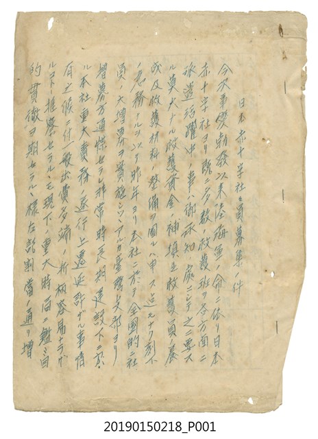 本件屬於日治晚期竹南庄鹽館前王家之部落社會教化政策相關文書其中一件。本件1939年「日本赤十字社社員募集ノ件」,也是因所謂支那事件的爆發,戰示禁行,需要赤十字支援。赤十字臺灣支部遂發起社員招募的活動。