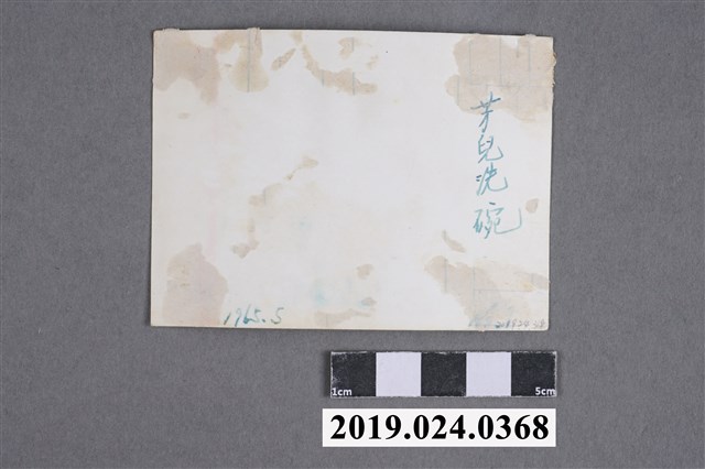 1.柯旗化獄中收到照片,柯旗化女兒柯潔芳在六合一路家中,背後註記「芳兒洗碗 1965.5」2.柯旗化在第二次入獄後,於獄中合作社買了活頁筆記本代替相簿,筆記本用黑線穿好,封面寫上”Album”字樣,將入獄期間家人寄來的相片全部浮貼或夾在相簿裡,此相片背部有被撕落的殘膠,原先夾於相簿中但目前已離開相簿另外存放,此類脫簿的照片共有46張 ,部分相片柯蔡阿李也在其背面寫下貼心註記。在照相機還不普及的五十年前,柯旗化的妻子柯蔡阿李便用照片用心的記錄家庭生活給獄中不見天日的柯旗化,也讓兒女透過相片,對鏡頭另一端的缺席的父親有了想像。