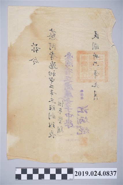 1947年蔡阿李虎尾女子中學初中一年三班副班長任命狀,內容為民國36年2月22日就讀於臺灣省立虎尾女子中學初中部一年級的蔡阿李被任命為第35年度下學期副班長,當時校長為江炳焜,共一張,使用臺灣省立虎尾女子中學專用箋紙。 2.日治後期在官方宣導以及社會領導階層的鼓吹下,女子受教育的比率日益提高,但仍然以中上階級富裕家庭的子女為多,而從雲林出生的蔡阿李自幼就被家人送至私立西螺幼稚園就讀,1940年(昭和15年)時進入西螺女子公學校就讀一年級,三年後轉學至男女合校的北港南國民學校繼續就讀,1945年蔡阿李以優異的成績畢業並進入虎尾女子中學先修班就讀,一年後便正式入虎尾女子中學中學部就讀,而蔡阿李高中入學那年1949年正直虎尾女子中學與虎尾中學校合併試行,故可發現成績單校名改成省立虎尾中學,隔年再度恢復分校制。蔡阿李於虎尾女子中學高中部就讀到2年級時,南下轉學至高雄女子中學高中部繼續完成學業。從收藏的成績單與獎狀來看,蔡阿李的學涯直至1952年高中畢業時,在校表現一路維持優秀的成績,並以全校第二名的好成績於高中畢業,也因此畢業不久的蔡阿李也隨即獲得國民學校代課教職的工作機會,開啟她下一階段的教職生涯。