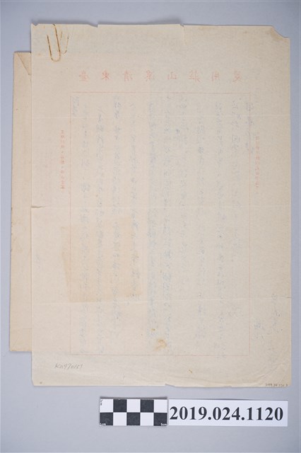 本文物為1970年9月22日柯旗化獄中家書,柯旗化第二次入獄時期(1961年到1976年)從獄中寄回家給柯蔡阿李及其親屬之信件,信件內容主要包括《新英文法》增補改訂的編輯工作、讀者回函以及對家人親屬的問候,由於柯旗化寫信時仍於監獄中,寄出的信件往往有字數限制,內容上也必須受到檢查。此文物於2007年時由柯蔡阿李女士委託本館進行《獄中家書:柯旗化坐監書信集》編輯出版工作,並於2010年將信件全文完成出版,2017年柯蔡阿李女士希望透過捐贈的方式將這批原先暫存於本館庫房的文物進入博物館典藏中。有別於過去戒嚴時期政治司法案件以解讀檔案建構歷史的形態,柯旗化的坐監書信集中當事人與其家屬的互動則提供了更常民、生活化的面向來理解這段歷史。紙張保存狀況尚完整,但已泛黃。