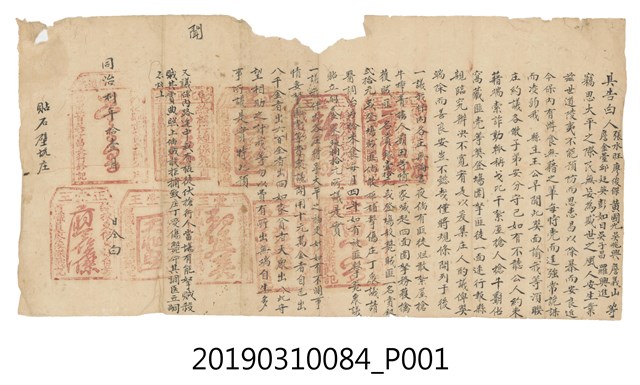 同治8年11月石壁坑庄張水旺等人立具告白字