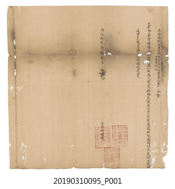 同治拾貳年拾貳月初一具保結狀阿里史社文件