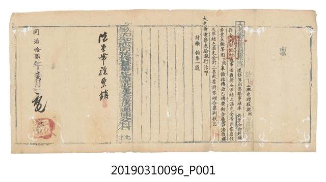 同治拾貳年十貳月初七阿里史社潘復興文件