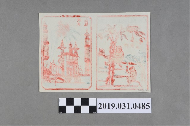 臺灣淡水與獼猴圖樣戳章烏龍茶包裝紙