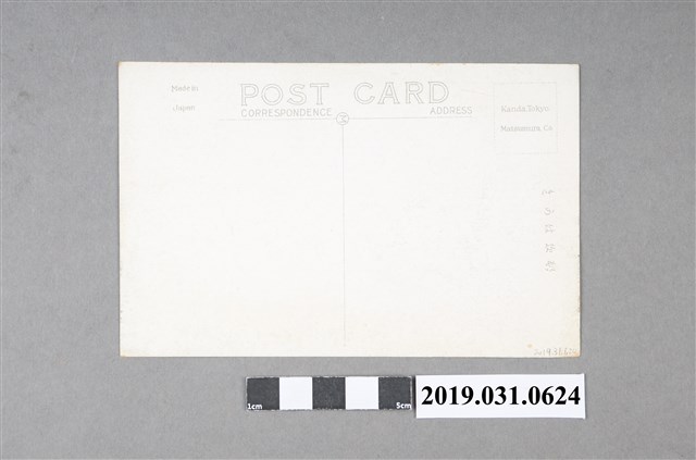 1.本物件為新竹州茶園採茶風景明信片。明信片為新竹州的茶園景觀,右半部可見山坡,左半部為茶園,茶園內有多名戴斗笠的婦女正在採茶;左上部有「(臺灣情調)茶園」的題名,以及日文解說;日文解說的大意是:新竹州下茶園之採茶異於日本,一年四季可採茶10幾次,年產值在1千萬圓以上。