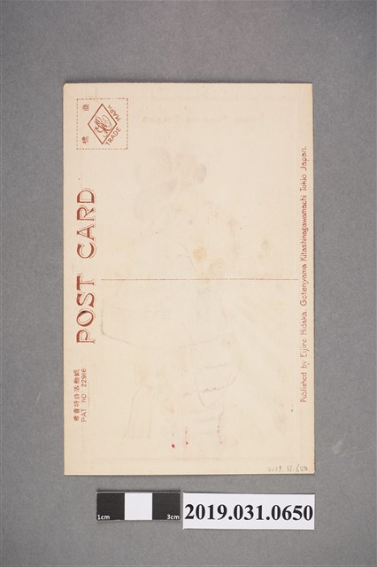 和服女子喝臺灣茶圖樣,絲綢明信片