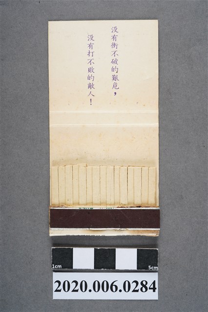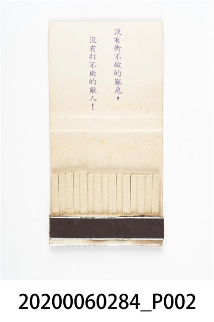 1.本件為數個火柴盒共同組成的文物。內容包含中華少棒球隊紀念火柴、國慶愛國火柴、各東物類或鐵力士鋼筆、三洋電視機等廣告的火柴盒,可以說是早期瓦斯爐尚不盛行,又可達到廣告宣傳的小小載體。2.日本公家單位也曾把火柴盒當作宣導文宣,包含交通安全或環境綠化等標語。臺灣方面,也學習日本將火柴盒作為廣告宣導的媒介(載體),在打火機與瓦斯爐普及前,火柴是臺灣重要的民生物資,因此火柴生產也行程專門產業,商家透過印製宣傳火柴盒作為贈品,用以販售或免費宣傳發送,盒面商標各具特色,例如臺灣火柴公司發行的「自由之火」火柴盒正面使用熊熊火把作為商標。