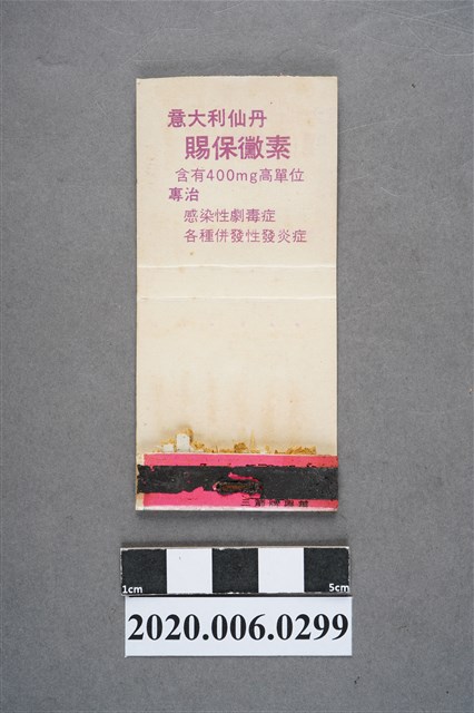 1.本件為數個火柴盒共同組成的文物。內容包含中華少棒球隊紀念火柴、國慶愛國火柴、各東物類或鐵力士鋼筆、三洋電視機等廣告的火柴盒,可以說是早期瓦斯爐尚不盛行,又可達到廣告宣傳的小小載體。2.日本公家單位也曾把火柴盒當作宣導文宣,包含交通安全或環境綠化等標語。臺灣方面,也學習日本將火柴盒作為廣告宣導的媒介(載體),在打火機與瓦斯爐普及前,火柴是臺灣重要的民生物資,因此火柴生產也行程專門產業,商家透過印製宣傳火柴盒作為贈品,用以販售或免費宣傳發送,盒面商標各具特色,例如臺灣火柴公司發行的「自由之火」火柴盒正面使用熊熊火把作為商標。