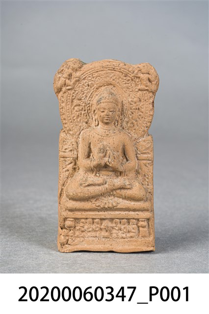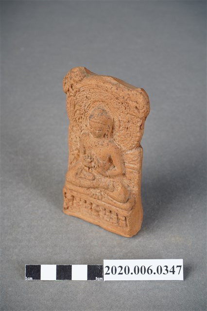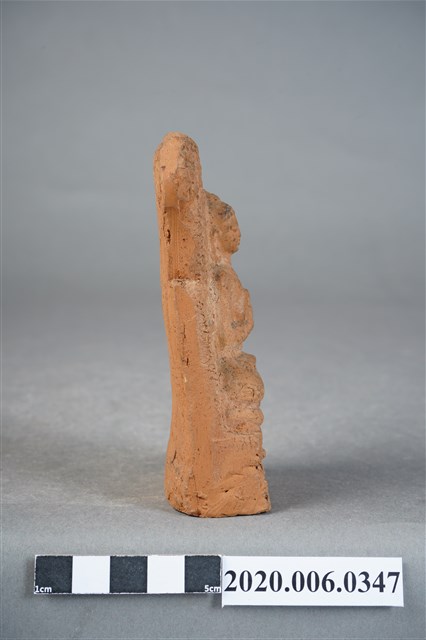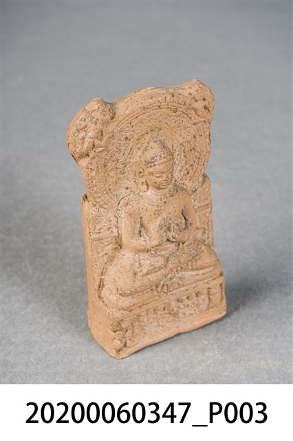 1.本物件為陶製神像,為原始陶色,雙手置於胸前,雙腳盤坐於蓮花座上,背後並有佛光。2.臺灣傳統陶瓷的發展,到了明末荷蘭治臺時期才開始,以燒瓦、磚為主,大約要到道光年間(1821至1850)才比較普及,只限於南投、苗栗、臺南、屏東、鶯歌、北投、淡水等地,在臺灣燒製日用陶器的窯場中,其中以南投窯最早設立,日本治臺時期1896年以後,窯業分佈在南投(屬臺中州)、鶯歌(屬臺北州)、北投(屬臺北州)、苗栗(屬新竹州),另外在松山、萬華、桃園、花蓮、屏東、大甲、清水、魚池等地都有生產,其中以南投、鶯歌、北投、苗栗比較具有規模。