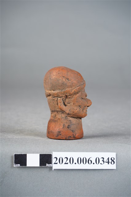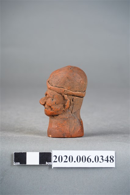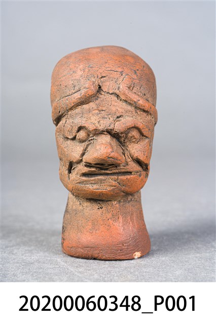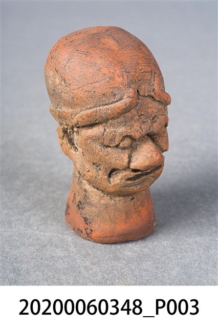1.本物件為陶製大頭神像,大眼大鼻,頭上並有1金箍。2.臺灣傳統陶瓷的發展,到了明末荷蘭治臺時期才開始,以燒瓦、磚為主,大約要到道光年間(1821至1850)才比較普及,只限於南投、苗栗、臺南、屏東、鶯歌、北投、淡水等地,在臺灣燒製日用陶器的窯場中,其中以南投窯最早設立,日本治臺時期1896年以後,窯業分佈在南投(屬臺中州)、鶯歌(屬臺北州)、北投(屬臺北州)、苗栗(屬新竹州),另外在松山、萬華、桃園、花蓮、屏東、大甲、清水、魚池等地都有生產,其中以南投、鶯歌、北投、苗栗比較具有規模。