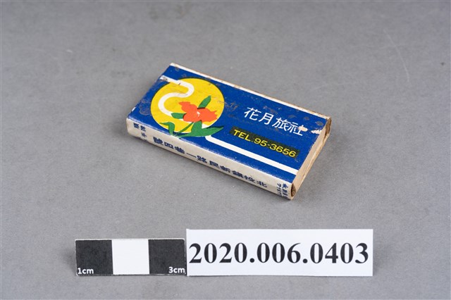 1.餐廳、飯店為主等廣告的火柴盒,可以說是早期瓦斯爐尚不盛行,又可達到廣告宣傳的小小載體。而火柴盒上通常有商家中英文名稱、商標或電話,偶有營業品項或設備,如桃花鄉酒家有電話與強調有冷暖設備、春成八卦窯則強調自家為「專製紅磚」、百利餐廳宣傳自家為法式西餐、飲料名酒、喜慶宴席、正宗中菜等。 2.臺灣在打火機與瓦斯爐普及前,火柴是臺灣重要的民生物資,因此火柴生產也行程專門產業,商家透過印製宣傳火柴盒作為贈品,用以販售或免費宣傳發送,盒面商標各具特色,例如臺灣火柴公司發行的「自由之火」火柴盒正面使用熊熊火把作為商標。而本件文物則有各家飯店的名稱,如圓山大飯店、希爾頓大飯店、六福客棧等,皆是現今仍持續營業的商家。