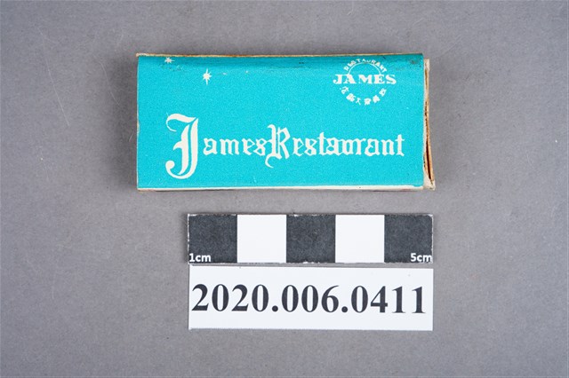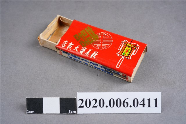1.餐廳、飯店為主等廣告的火柴盒,可以說是早期瓦斯爐尚不盛行,又可達到廣告宣傳的小小載體。而火柴盒上通常有商家中英文名稱、商標或電話,偶有營業品項或設備,如桃花鄉酒家有電話與強調有冷暖設備、春成八卦窯則強調自家為「專製紅磚」、百利餐廳宣傳自家為法式西餐、飲料名酒、喜慶宴席、正宗中菜等。 2.臺灣在打火機與瓦斯爐普及前,火柴是臺灣重要的民生物資,因此火柴生產也行程專門產業,商家透過印製宣傳火柴盒作為贈品,用以販售或免費宣傳發送,盒面商標各具特色,例如臺灣火柴公司發行的「自由之火」火柴盒正面使用熊熊火把作為商標。而本件文物則有各家飯店的名稱,如圓山大飯店、希爾頓大飯店、六福客棧等,皆是現今仍持續營業的商家。
