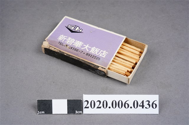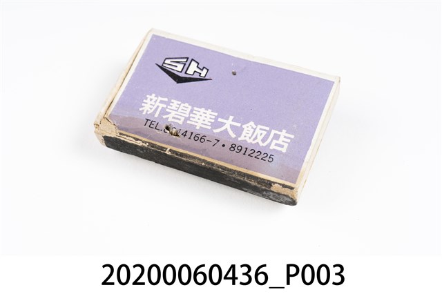 1.餐廳、飯店為主等廣告的火柴盒,可以說是早期瓦斯爐尚不盛行,又可達到廣告宣傳的小小載體。而火柴盒上通常有商家中英文名稱、商標或電話,偶有營業品項或設備,如桃花鄉酒家有電話與強調有冷暖設備、春成八卦窯則強調自家為「專製紅磚」、百利餐廳宣傳自家為法式西餐、飲料名酒、喜慶宴席、正宗中菜等。 2.臺灣在打火機與瓦斯爐普及前,火柴是臺灣重要的民生物資,因此火柴生產也行程專門產業,商家透過印製宣傳火柴盒作為贈品,用以販售或免費宣傳發送,盒面商標各具特色,例如臺灣火柴公司發行的「自由之火」火柴盒正面使用熊熊火把作為商標。而本件文物則有各家飯店的名稱,如圓山大飯店、希爾頓大飯店、六福客棧等,皆是現今仍持續營業的商家。