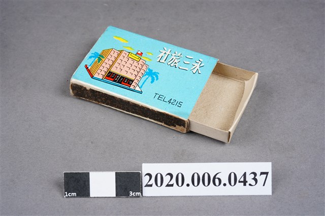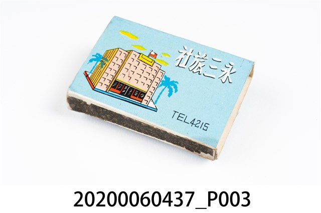 1.餐廳、飯店為主等廣告的火柴盒,可以說是早期瓦斯爐尚不盛行,又可達到廣告宣傳的小小載體。而火柴盒上通常有商家中英文名稱、商標或電話,偶有營業品項或設備,如桃花鄉酒家有電話與強調有冷暖設備、春成八卦窯則強調自家為「專製紅磚」、百利餐廳宣傳自家為法式西餐、飲料名酒、喜慶宴席、正宗中菜等。 2.臺灣在打火機與瓦斯爐普及前,火柴是臺灣重要的民生物資,因此火柴生產也行程專門產業,商家透過印製宣傳火柴盒作為贈品,用以販售或免費宣傳發送,盒面商標各具特色,例如臺灣火柴公司發行的「自由之火」火柴盒正面使用熊熊火把作為商標。而本件文物則有各家飯店的名稱,如圓山大飯店、希爾頓大飯店、六福客棧等,皆是現今仍持續營業的商家。