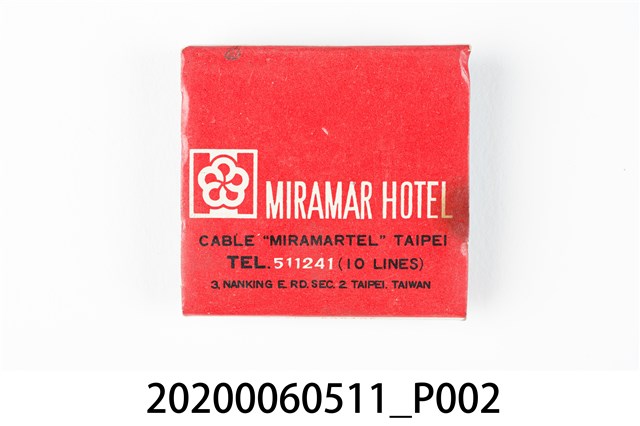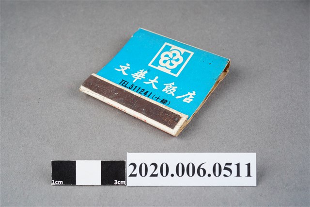 1.餐廳、飯店為主等廣告的火柴盒,可以說是早期瓦斯爐尚不盛行,又可達到廣告宣傳的小小載體。而火柴盒上通常有商家中英文名稱、商標或電話,偶有營業品項或設備,如桃花鄉酒家有電話與強調有冷暖設備、春成八卦窯則強調自家為「專製紅磚」、百利餐廳宣傳自家為法式西餐、飲料名酒、喜慶宴席、正宗中菜等。 2.臺灣在打火機與瓦斯爐普及前,火柴是臺灣重要的民生物資,因此火柴生產也行程專門產業,商家透過印製宣傳火柴盒作為贈品,用以販售或免費宣傳發送,盒面商標各具特色,例如臺灣火柴公司發行的「自由之火」火柴盒正面使用熊熊火把作為商標。而本件文物則有各家飯店的名稱,如圓山大飯店、希爾頓大飯店、六福客棧等,皆是現今仍持續營業的商家。